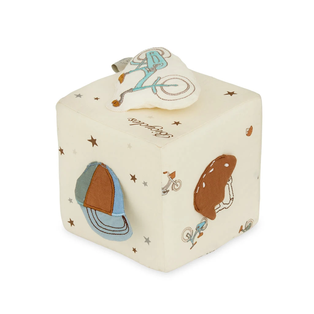 Soft and playful Activity Cube inspired by our delightful Bicycles print.