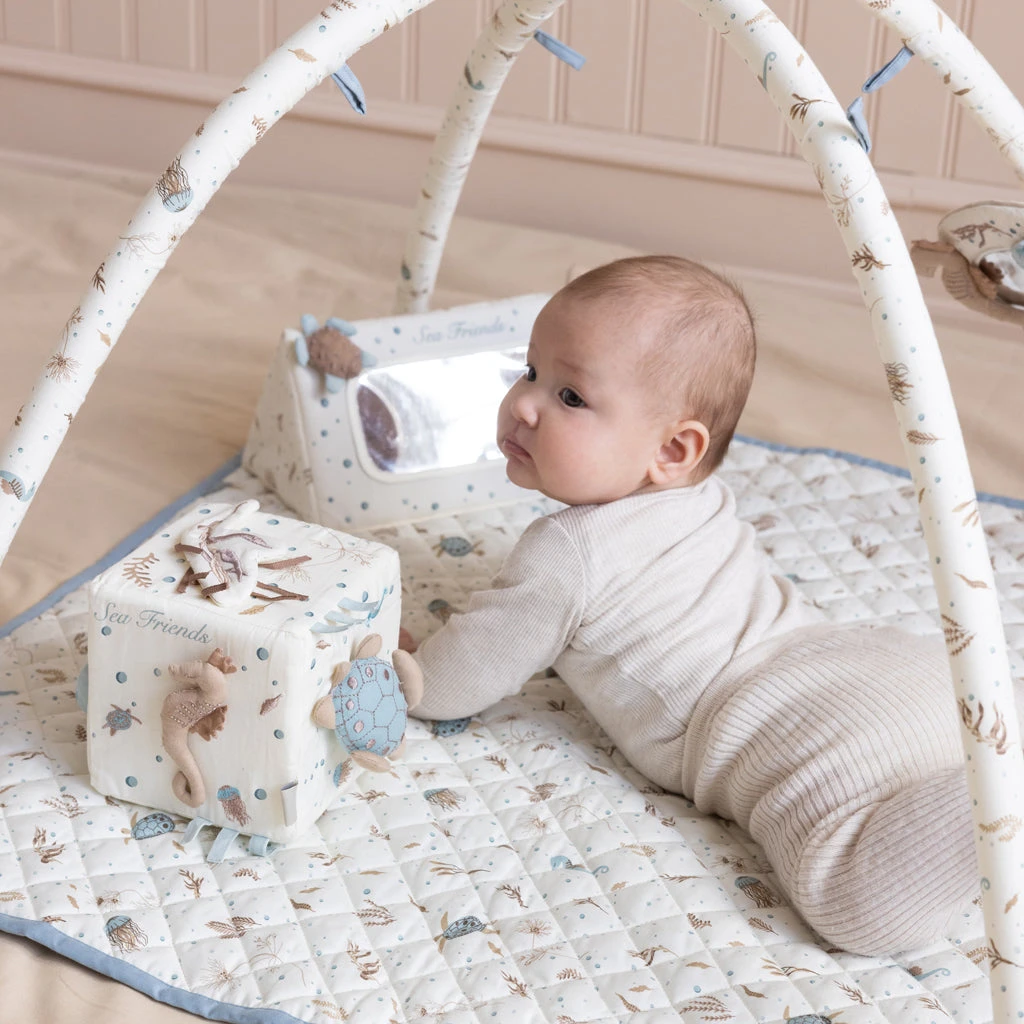 Soft and playful Activity Cube inspired by our delightful Sea Garden print.
