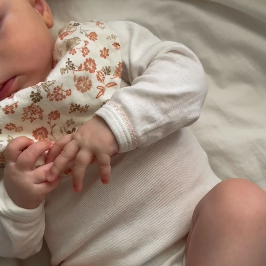 The organic cotton Bib can also be used as a scarf which gives it a versatile functionality and a longer lifespan. Adjustable size with 2 summarys. Available in different prints and solid colours.