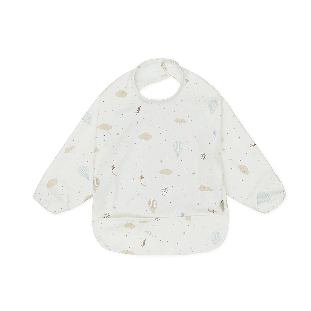 Fully covering bib with long sleeves and a practical pocket.