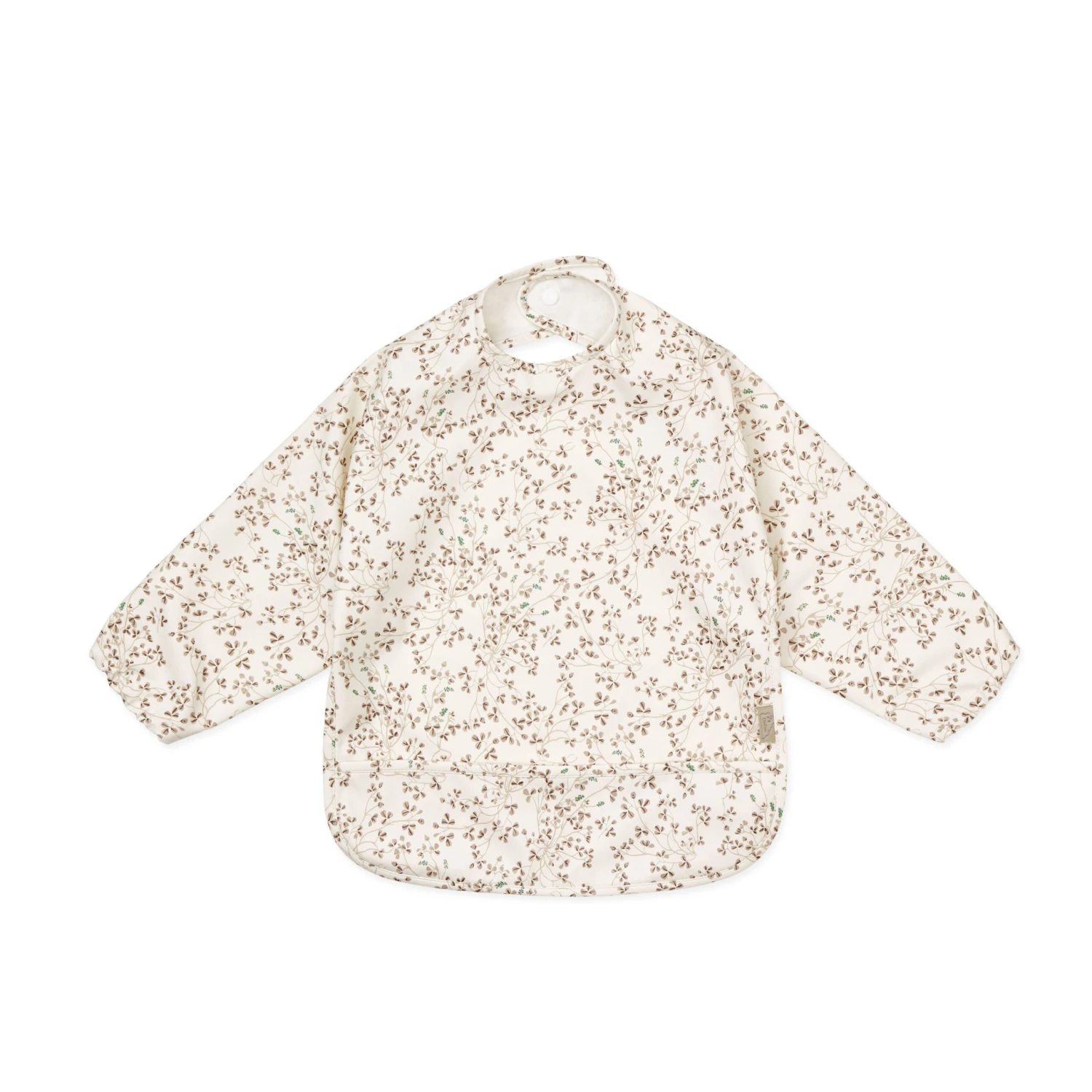 Fully covering bib with long sleeves and a practical pocket.