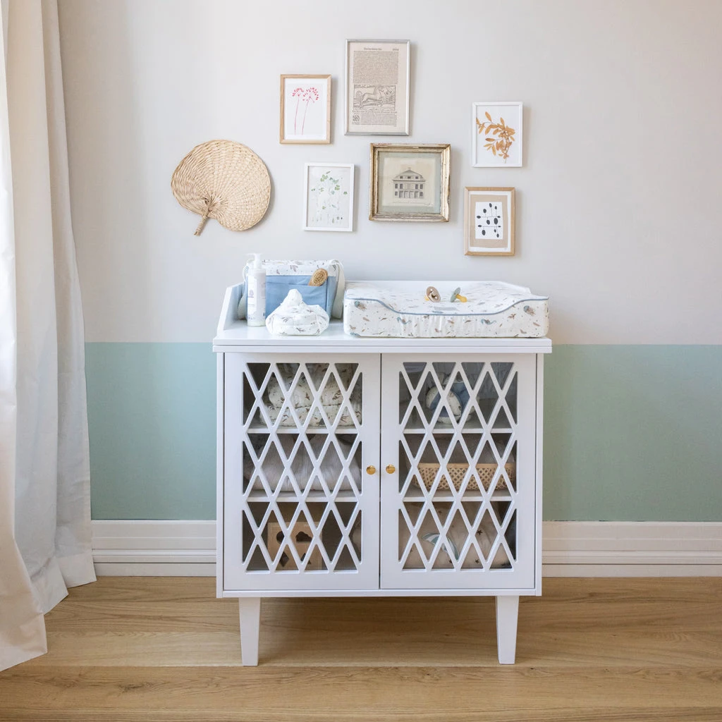 Changing cushion with a comfortable shape and high edges, which provides good support for the baby. The cushion is made of cold pressed foam and has a detachable and washable cover.