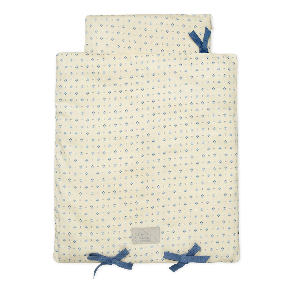 The doll’s bedding fits the Cam Cam Doll’s bed. The covers can be zipped off and washed separately.