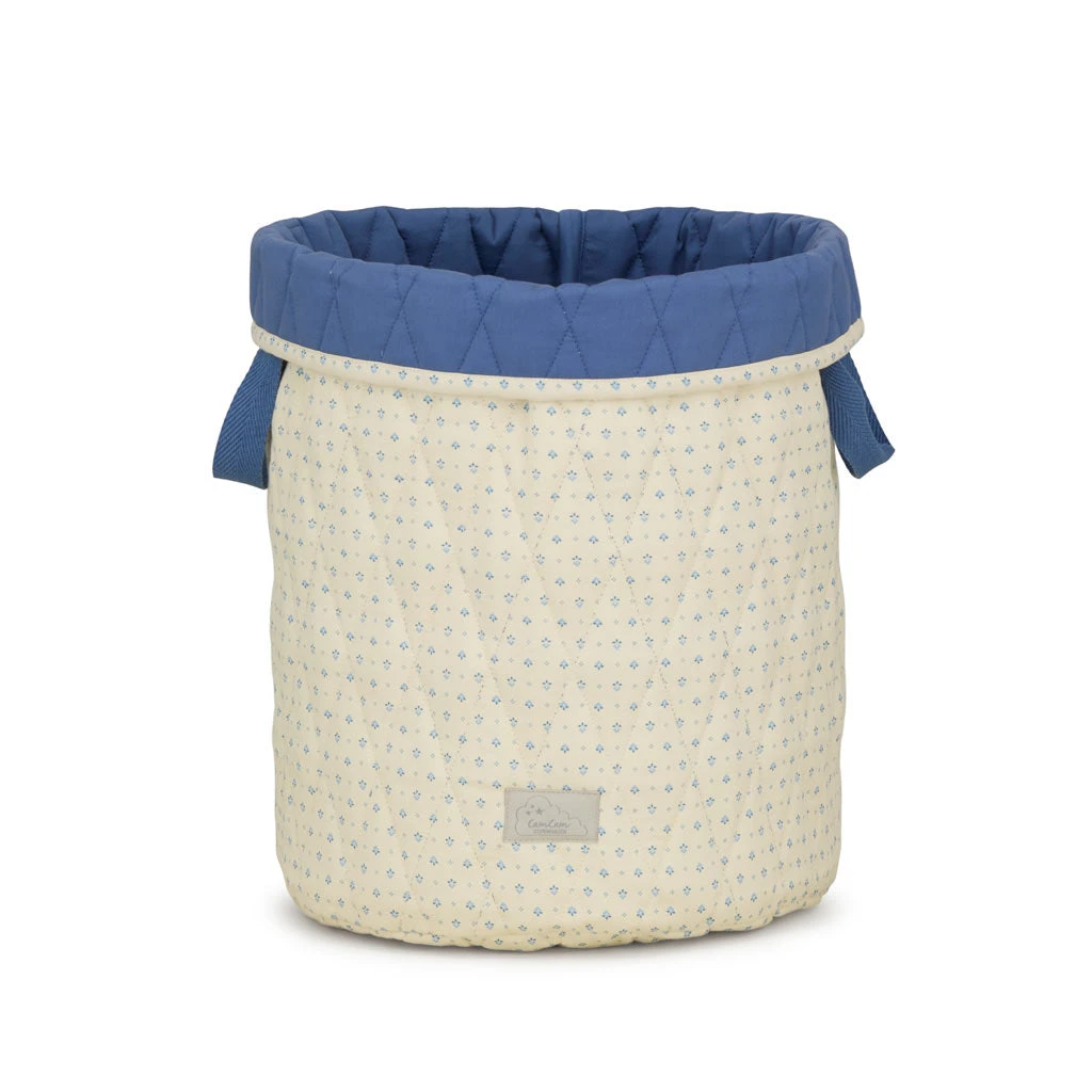 The basket is made of OCS certified organic cotton. Fabric Storage Basket in white and blue shades
