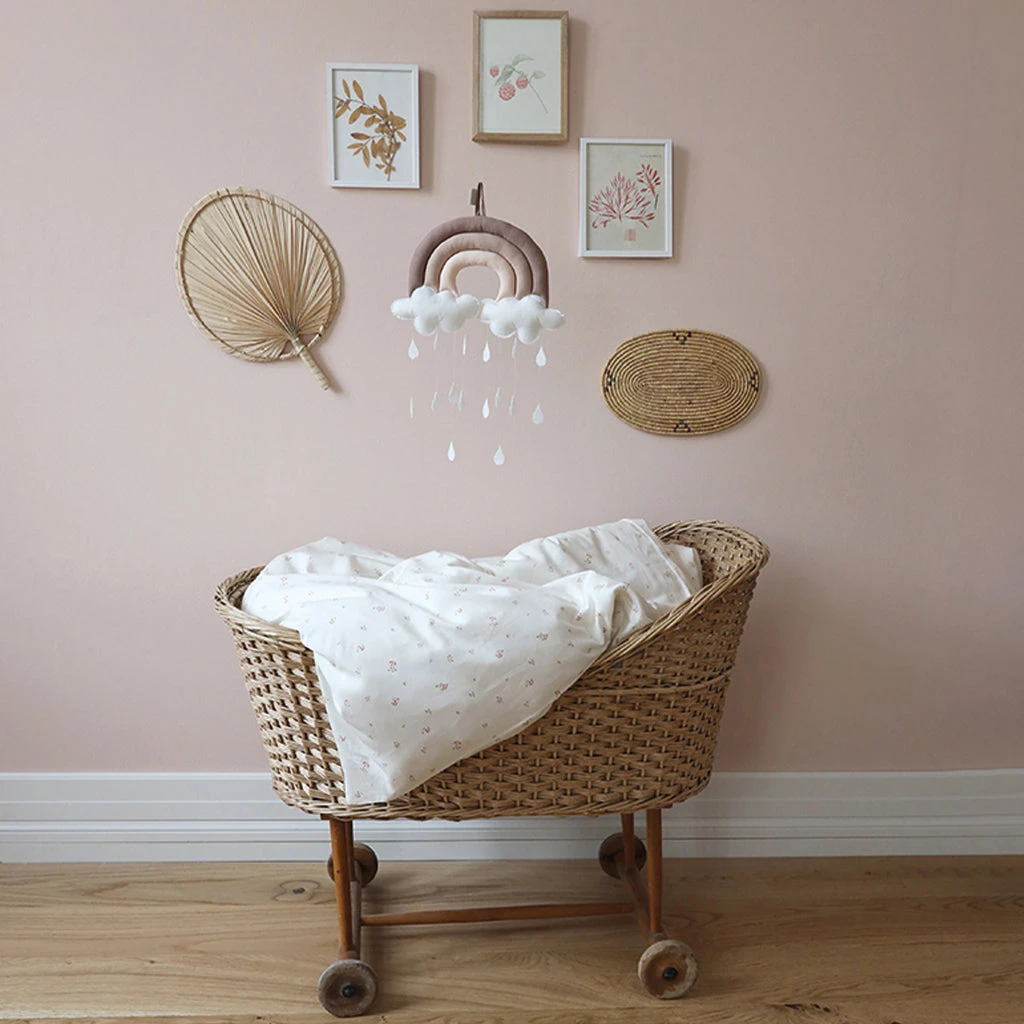 The rainbow creates a dreamy universe, and the gentle movements of the cute raindrops in the air will entertain your baby.