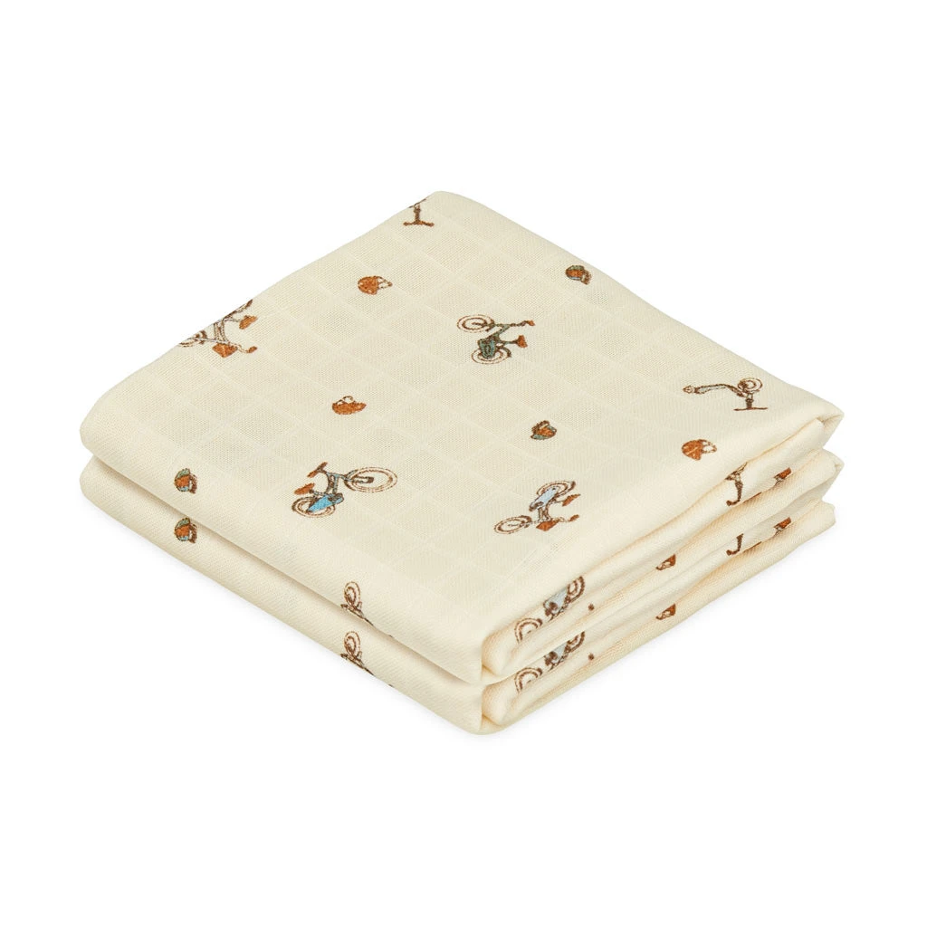 The muslin cloths have many functions. Perfect for the changing table, the pram or to cuddle with.