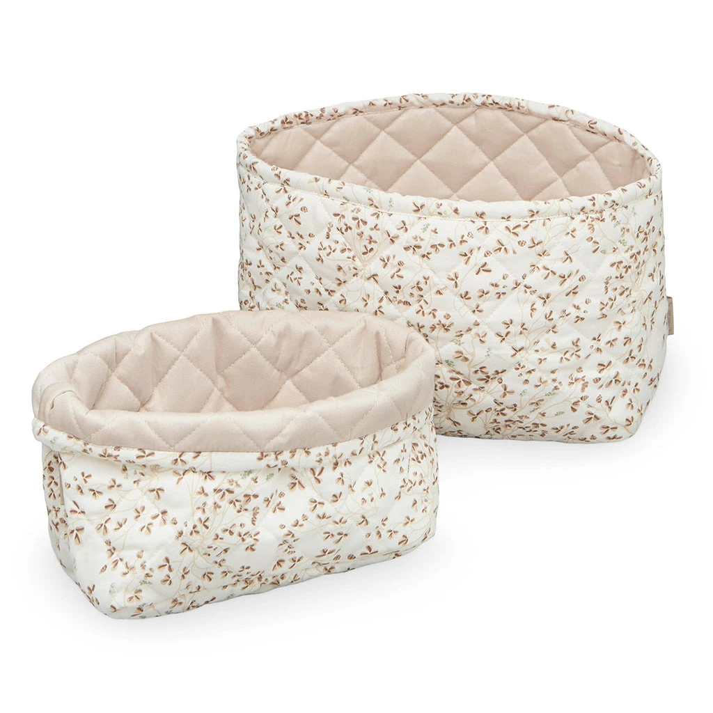 The quilted storage baskets are practical for organizing at the changing table, in your nursery, or at the bathroom. The baskets are made of OCS certified organic cotton, and have a pretty quilting.