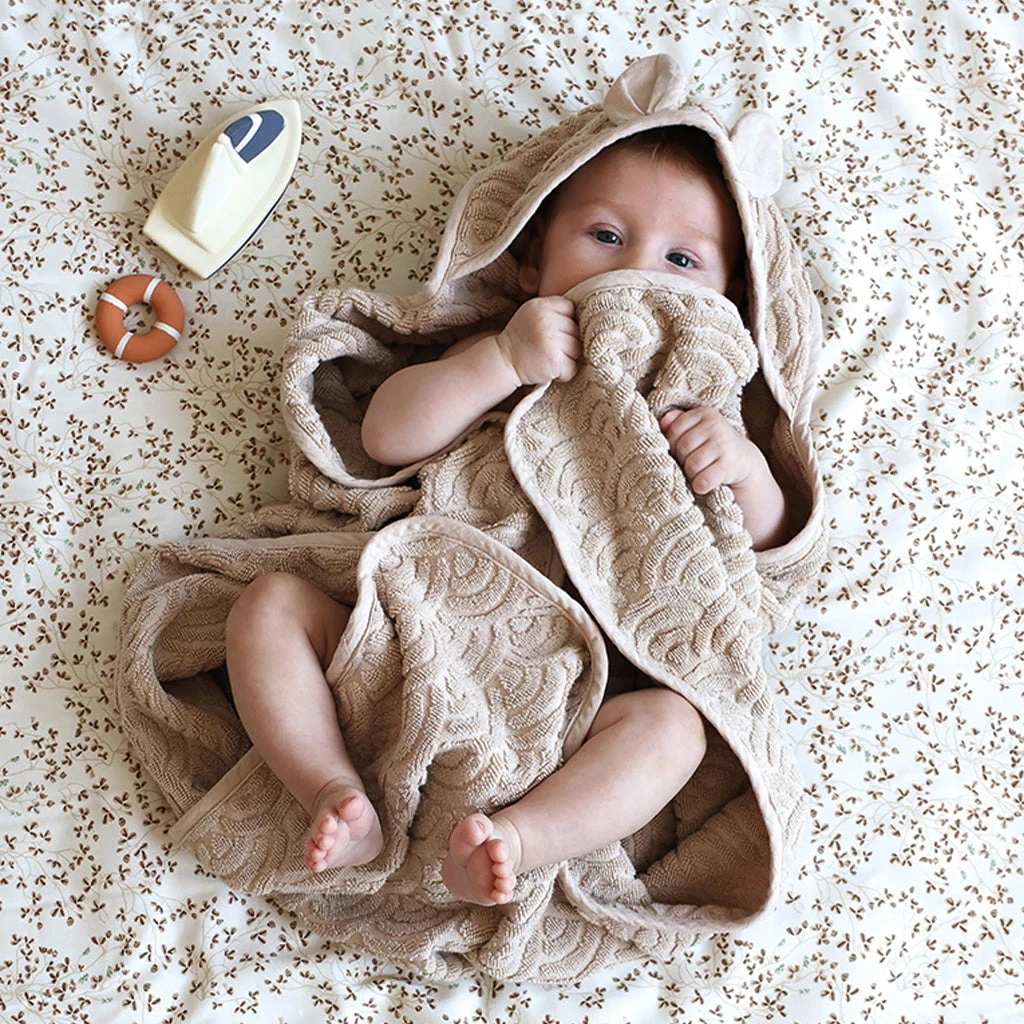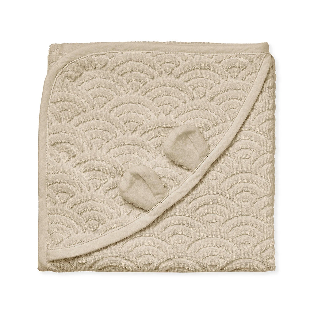 The towel has a small hood with the cutest little bear ears and is perfect for snuggling after a warm bath. The airy wave pattern makes the towel fast drying.